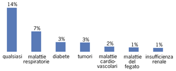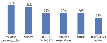 - valori più elevati tra le persone affette da diabete (36%) e malattie cardiovascolari (39%).