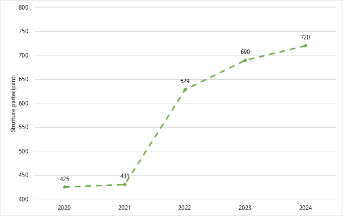 Figura 3. Numero di strutture partecipanti alla sorveglianza. Italia, 2020-2024