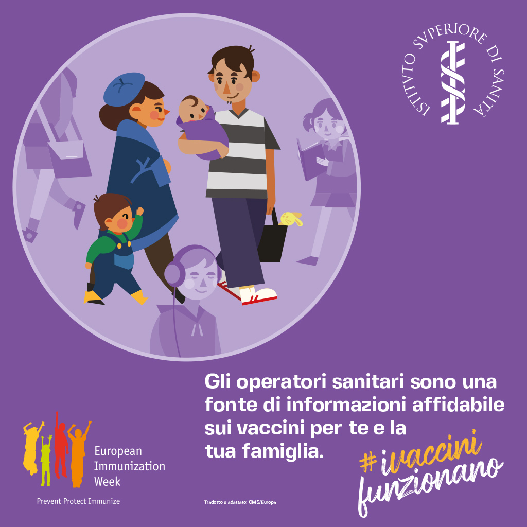 - EIW: “Gli operatori sanitari sono una fonte di informazioni affidabile sui vaccini per te e la tua famiglia” (pdf 604 kb) e la versione per i social (jpg 264 kb)