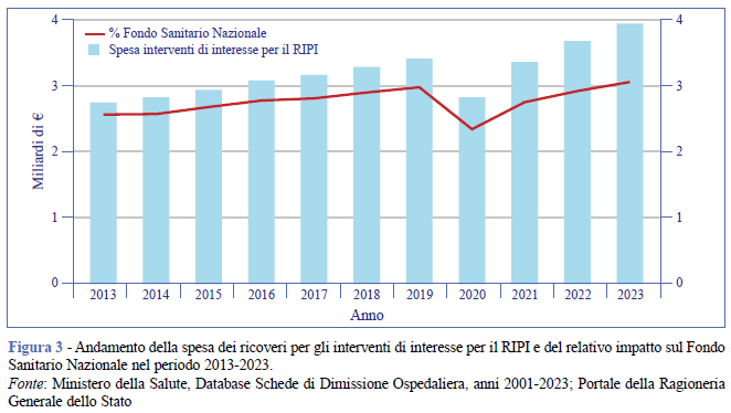 The lists of variables to be collected and the medical device taxonomies were defined, as were the regulatory and legislative framework for RIPI data processing and the RIPI IT infrastructure (π-RIPI). Over 23 years, the number of procedures considered by RIPI has more than doubled, impacting national health expenditure by 3.1% in 2023.