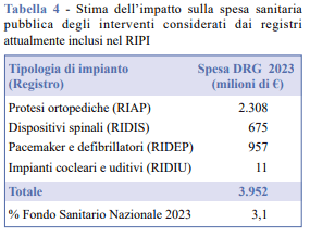 Obiettivo di questo lavoro è presentare lo stato dell’arte del RIPI e i risultati di un’esplorazione dell’archivio nazionale delle Schede di Dimissione Ospedaliera (SDO) relative alle procedure di interesse per i registri inclusi nel primo nucleo del RIPI: Registro Italiano ArtroProtesi (RIAP), Registro Italiano Defibrillatori E Pacemaker (RIDEP), Registro Italiano Dispositivi Impiantabili per chirurgia Spinale (RIDIS), Registro Italiano Dispositivi Impiantabili Uditivi (RIDIU), stimandone l’impatto sulla spesa sanitaria.