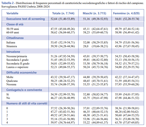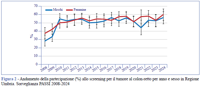 L’adesione allo screening per il carcinoma colon-retto in Umbria: un'analisi esplorativa sulla differenza tra i sessi dal sistema di sorveglianza PASSI (2008-2024)