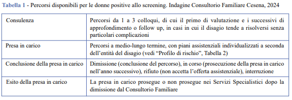 Ai fini della presente analisi sono state adottate definizioni operative condivise per consulenza, presa in carico, conclusione ed esito (Tabella 1).